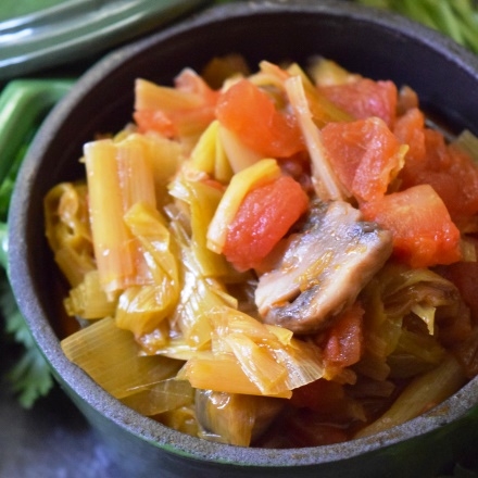 簡単に野菜たっぷり リーキ Leek と鶏もも肉のトマト煮込みレシピ パースで手作りざんまい